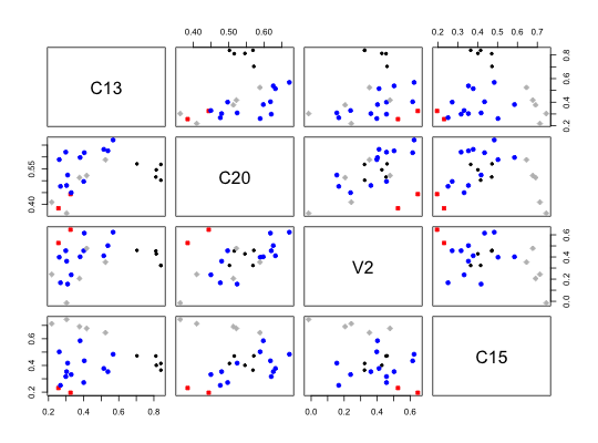 An alternative solution is to ask for a somewhat more stringent set of criteria and require an increase in the size of beta for all clusters greater than 3 variables. This produces a 4 cluster solution.