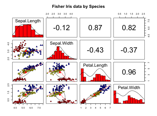 pairs(x, smooth = TRUE, scale = FALSE, density=TRUE,ellipses=TRUE,